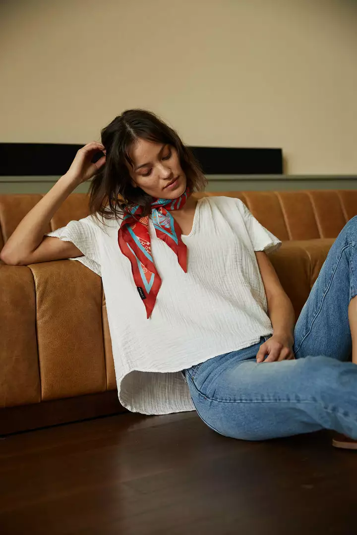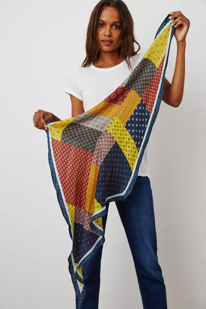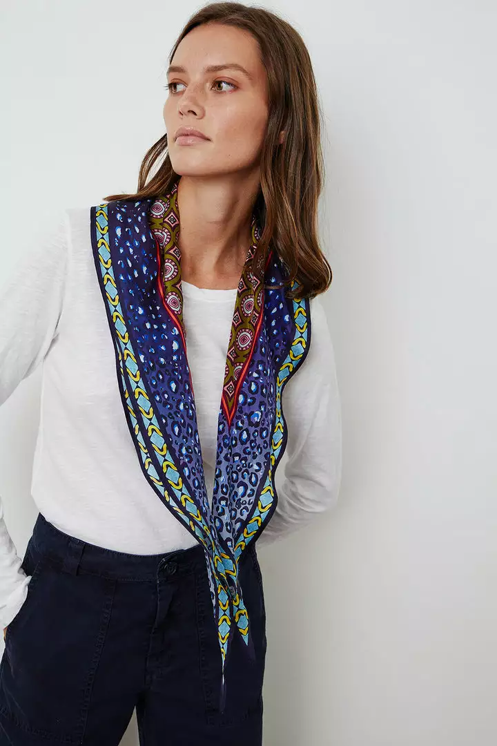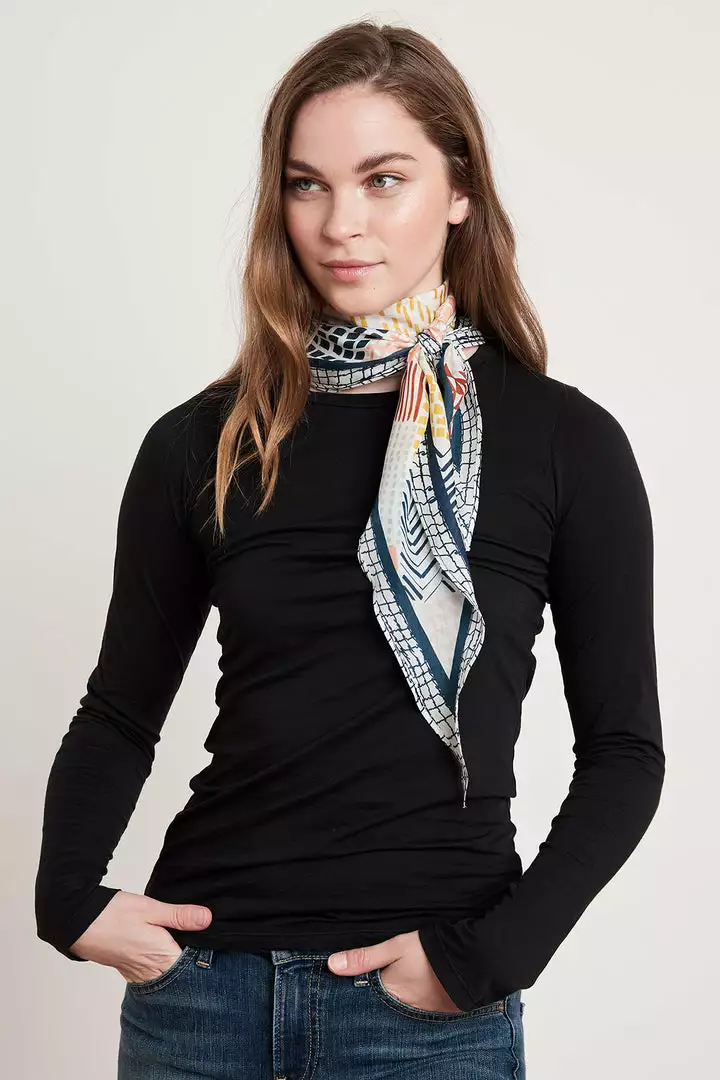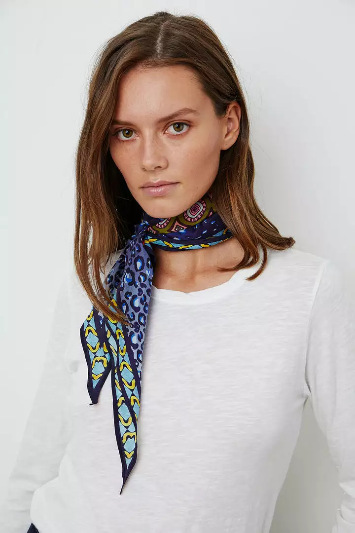 We designed this scarf in a diamond silhouette so it would be extra easy to roll and knot or wear like a traditional bandana. Crafted from silk.