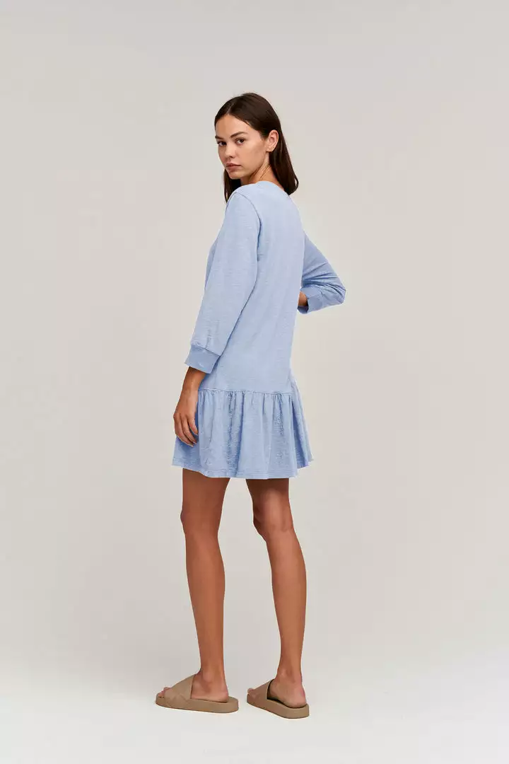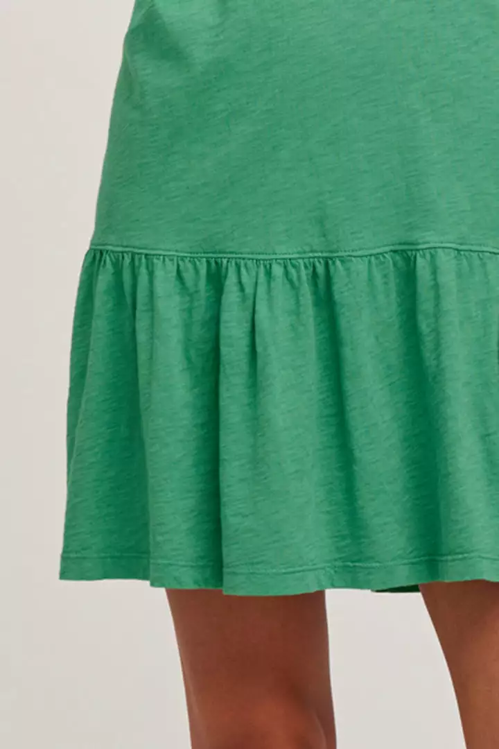 Crafted from our signature cotton slub, this casual frock feels sporty with it’s banded neckline and cuffs. The tiered skirt adds a feminine edge, perfect for the weekend or vacations.