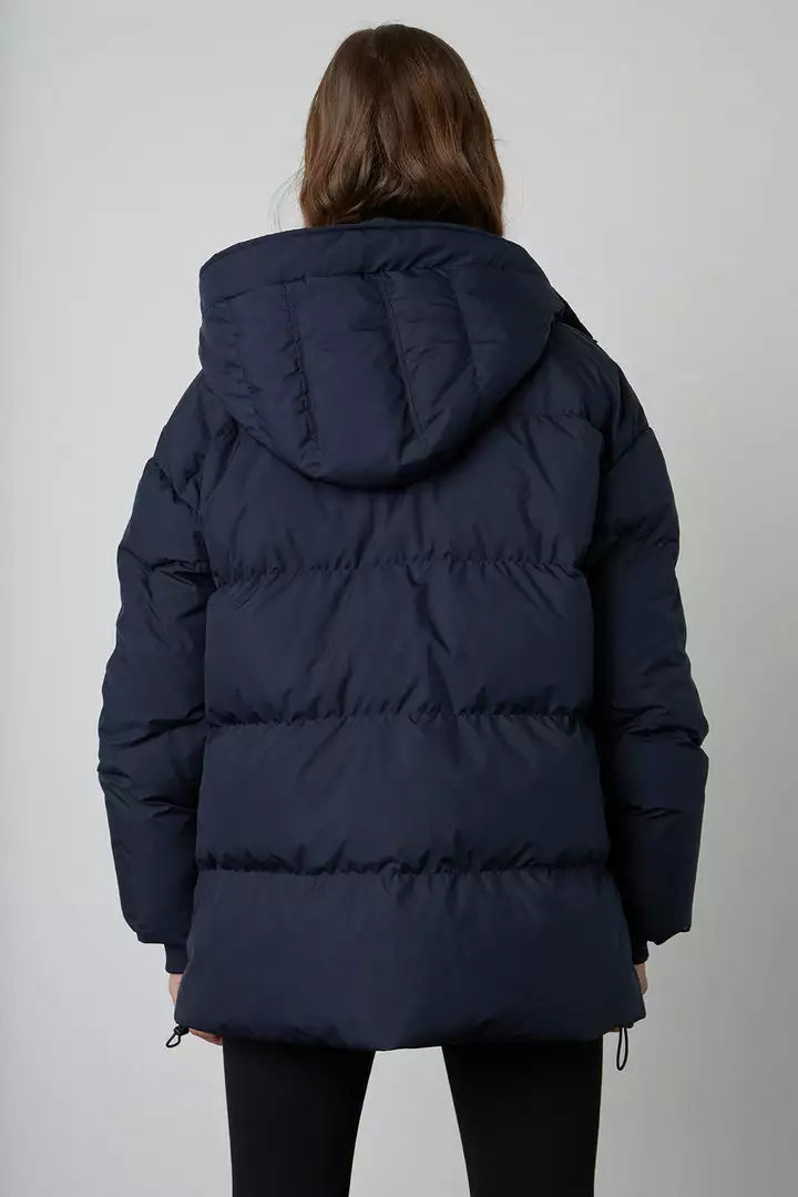 Gearing up for the big chill. A cozy puffer that perfectly marries form and function. A zip and snap-button front, ribbed cuffs and a toggle cinch at the hemline. Ready for the elements.