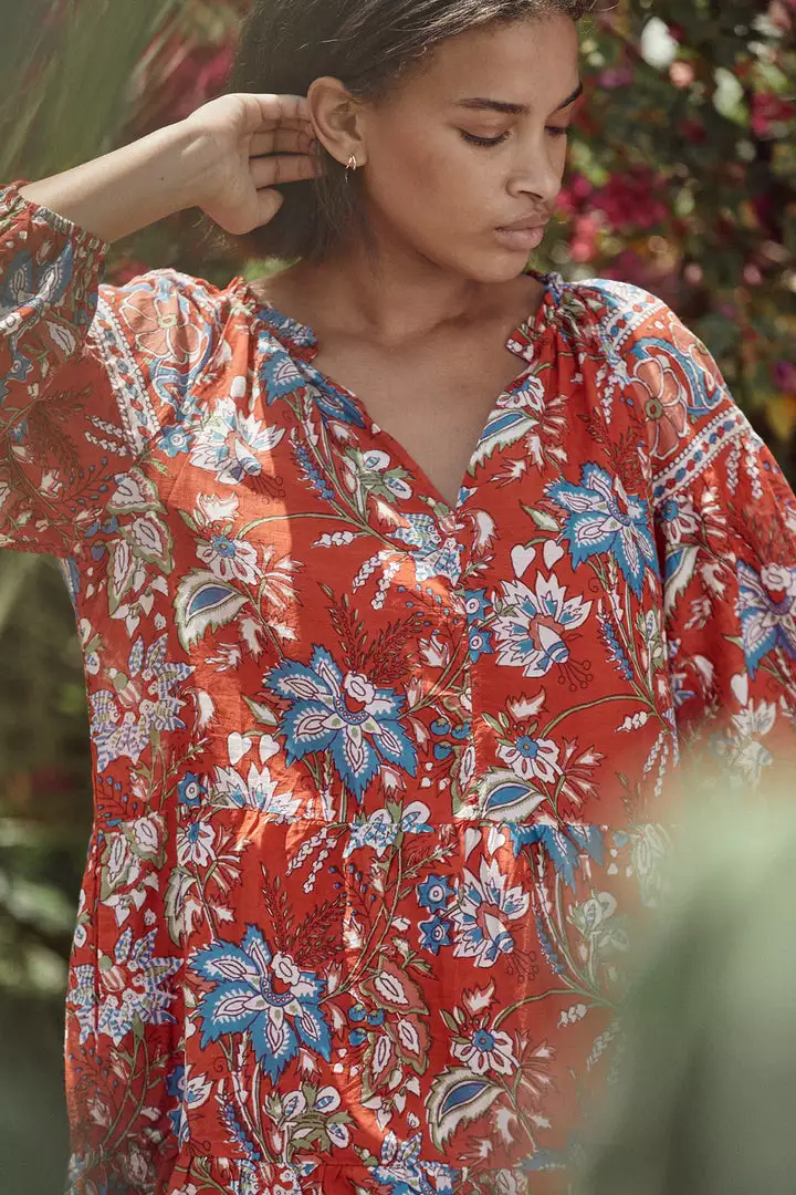 Crafted from a lightweight cotton voile, this dress feels like an essential for hot summer days. The breezy fabrication pairs perfectly with a classically-inspired batik print and the cropped, puffed sleeves.