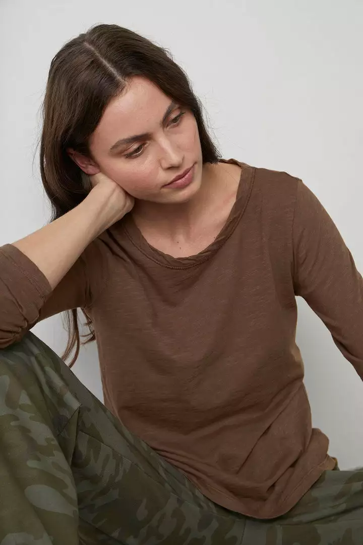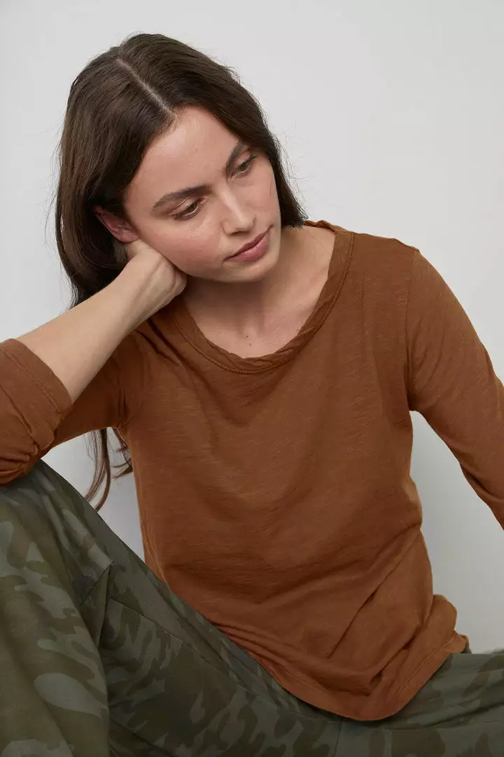 Crafted in our deliciously whisper-soft cotton, this long-sleeve tee is dreamy. Featuring a universally flattering cut it’s our winter wonder. Be prepared to live in it.