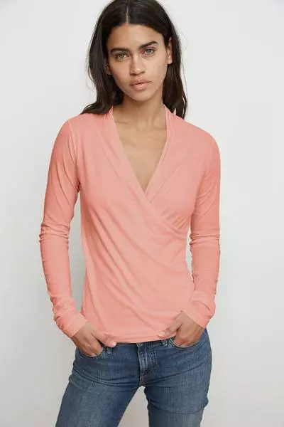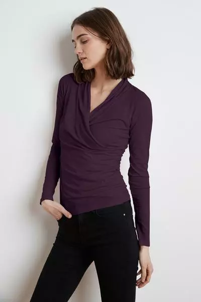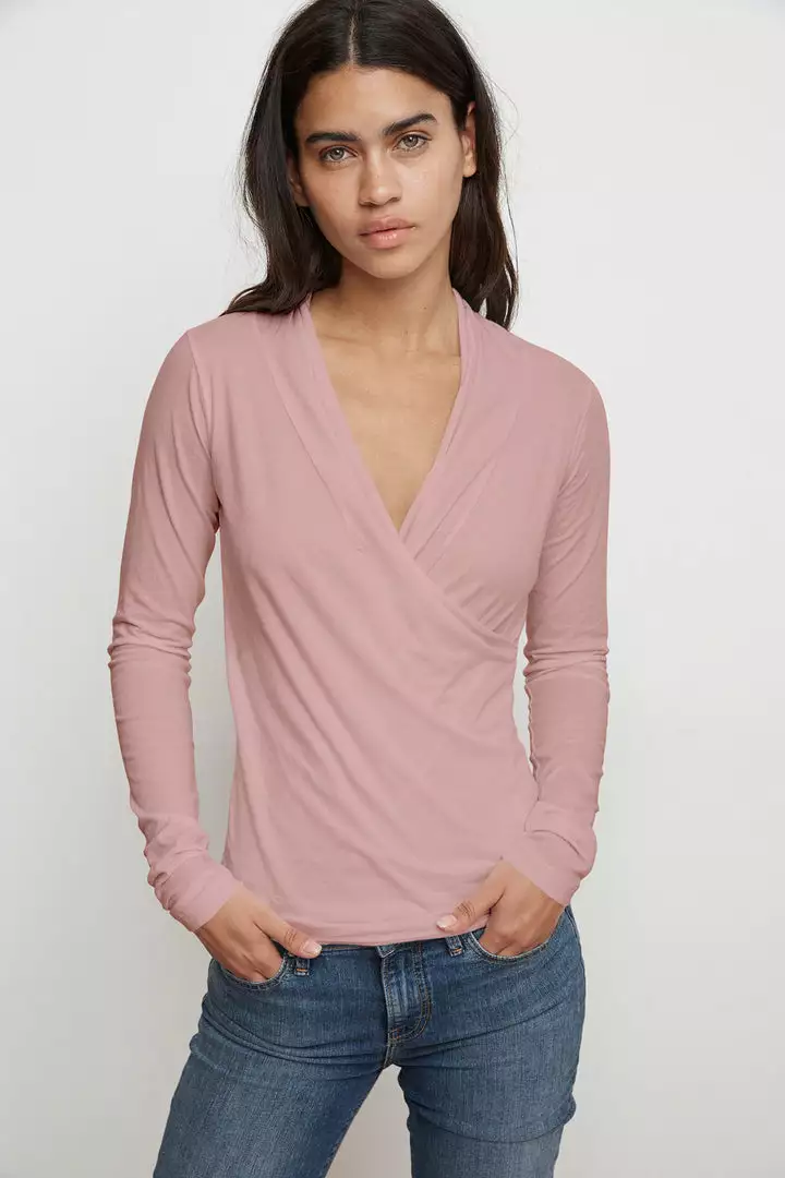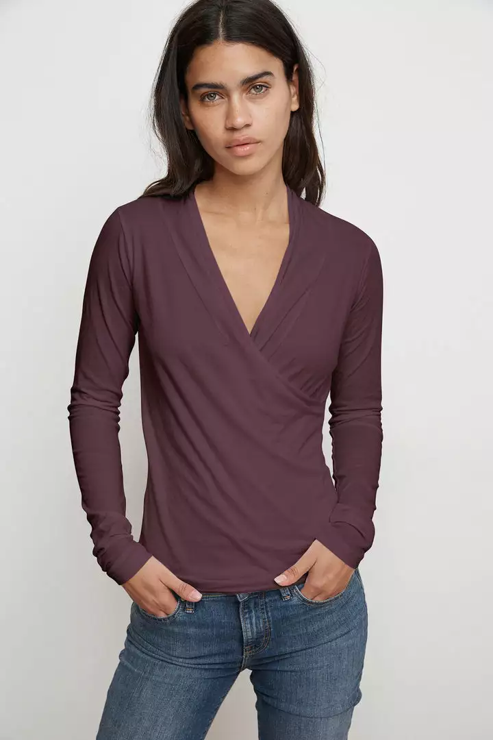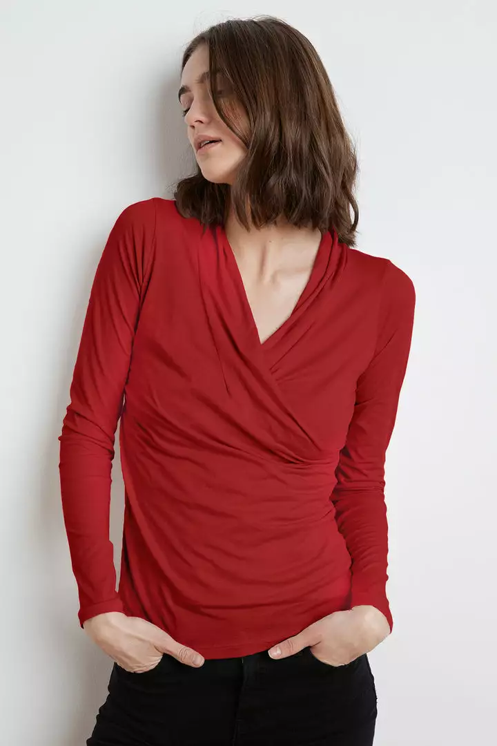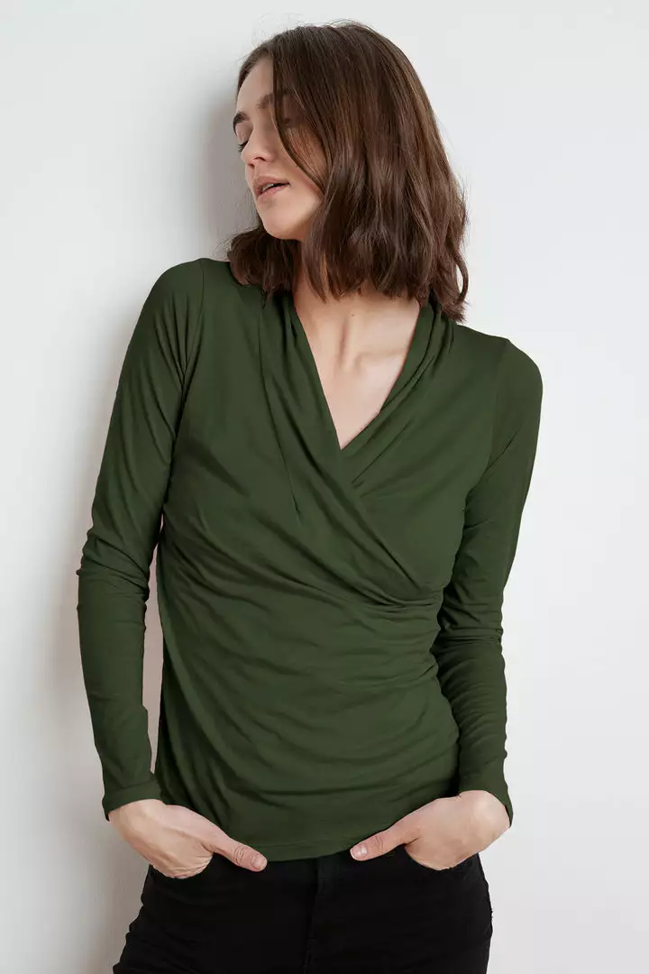 With her clean lines and classic shape, Meri defies seasons and trends and is the perfect staple piece. Crafted in lightweight gauzy whisper with her cross over v-neck, she provides a lovely modern, romantic look.