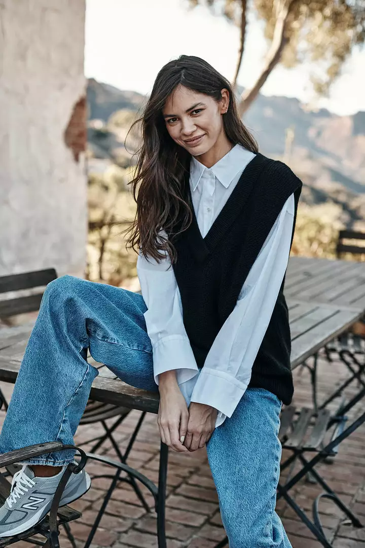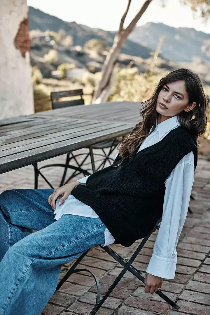 A simply chic transitional sweater vest. Crafted from a wool blend, this chunky knit is designed to be layered over anything and everything–rom a long sleeve tee to a tailored button-up.