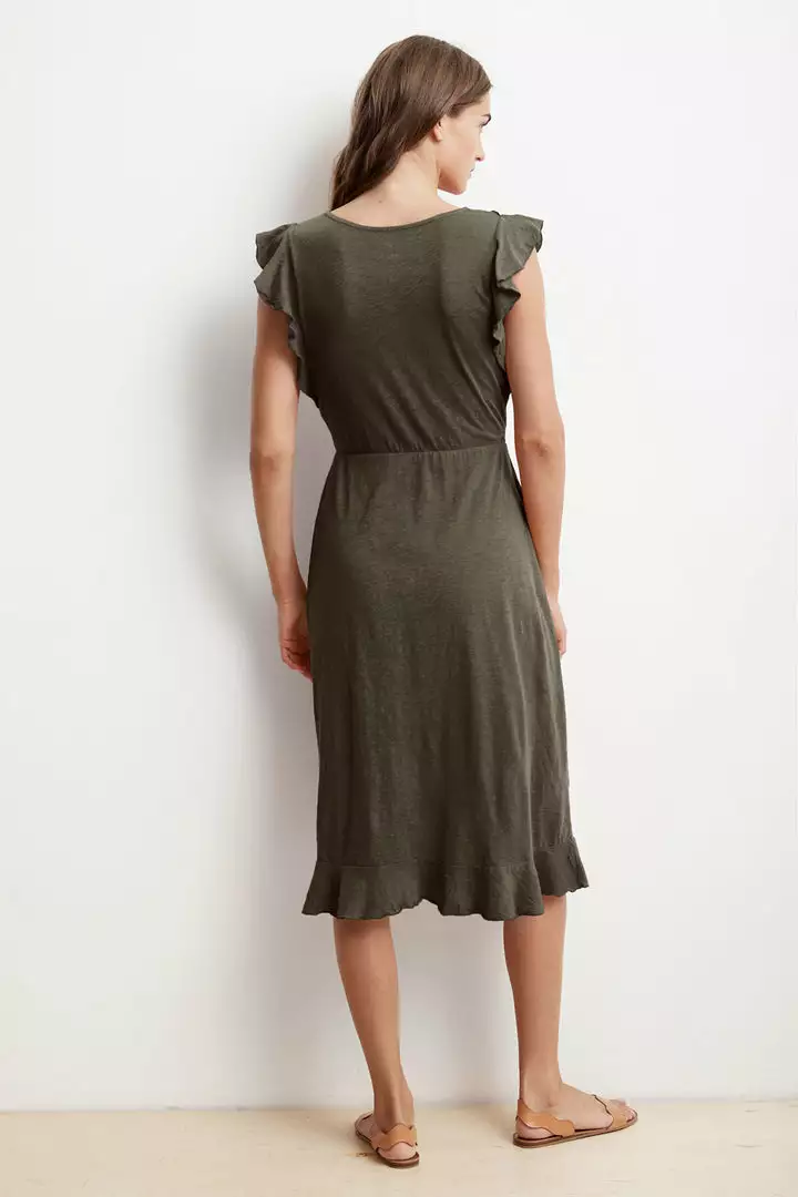 Here’s the perfect dress, that is also just right for summer. Crafted from our soft cotton slub, which has a hint of sheer and a heathered texture. This just-below-the-knee beauty features a wrap silhouette with a tie at the side waist, as well as a chic ruffle on the sleeves and neckline. Easy and amazing.