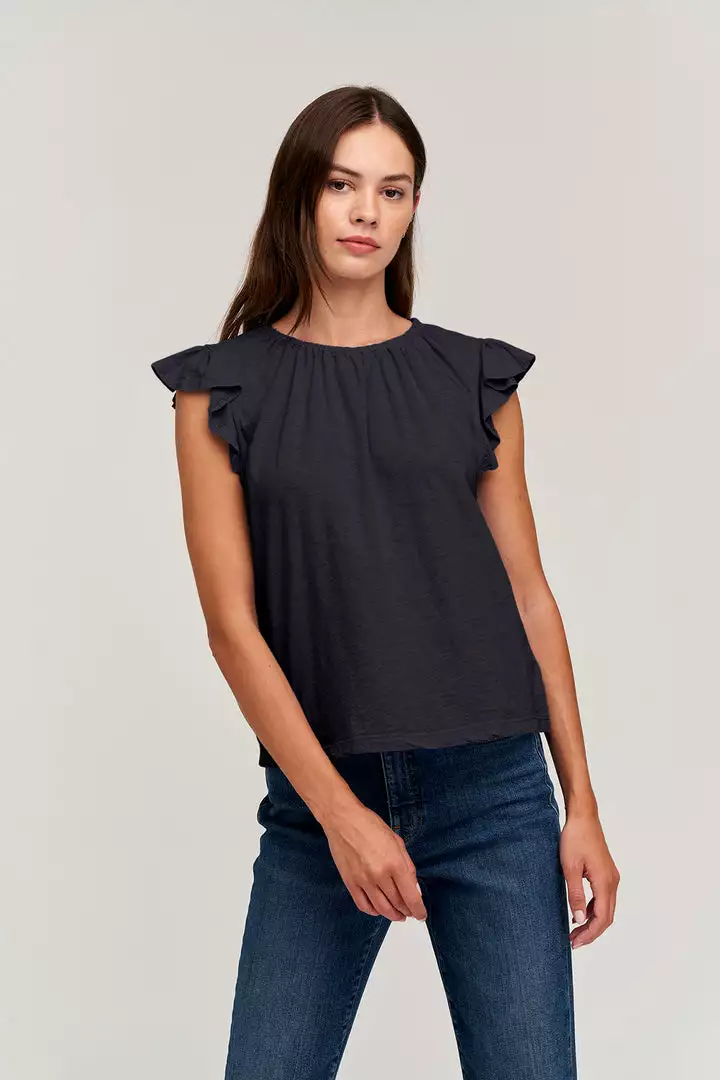 Velvet By Graham & Spencer Womens STACY RUFFLE SLEEVE TANK