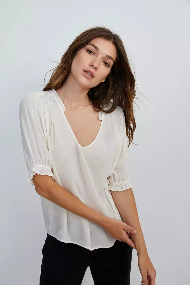 Velvet By Graham & Spencer Womens TRIXIE RUFFLED BLOUSE