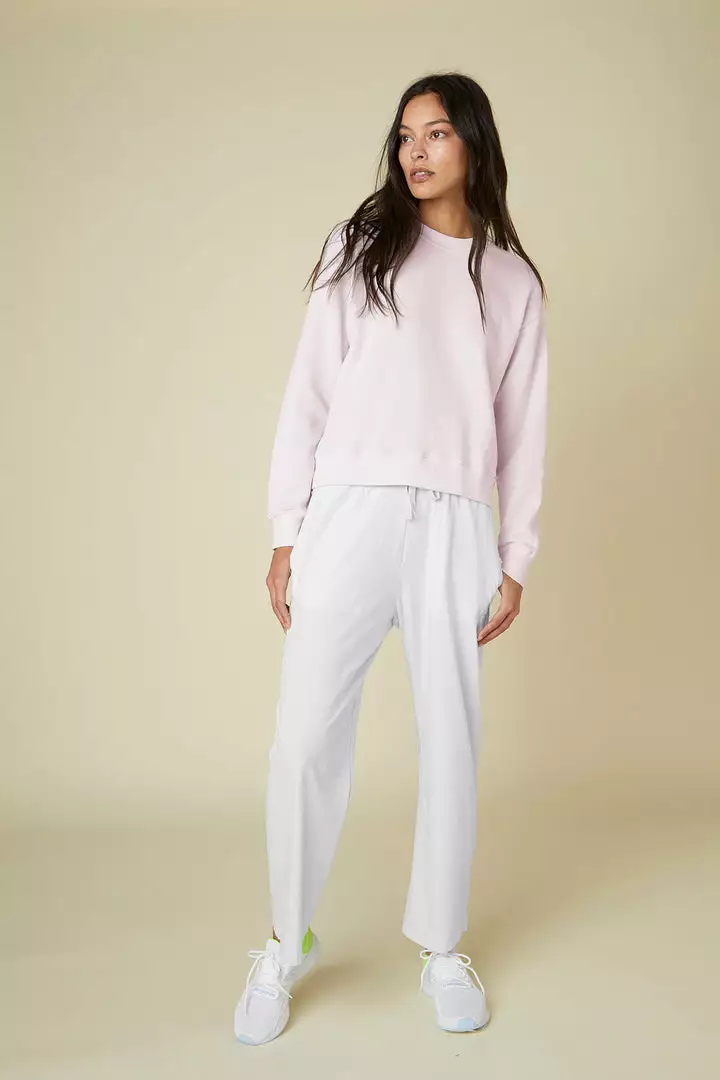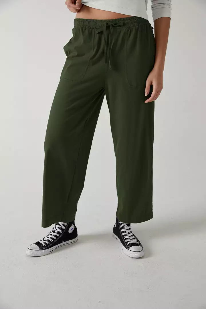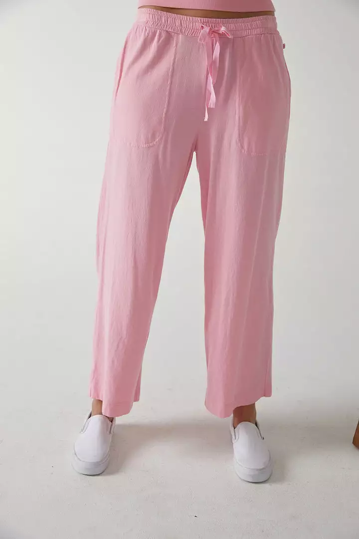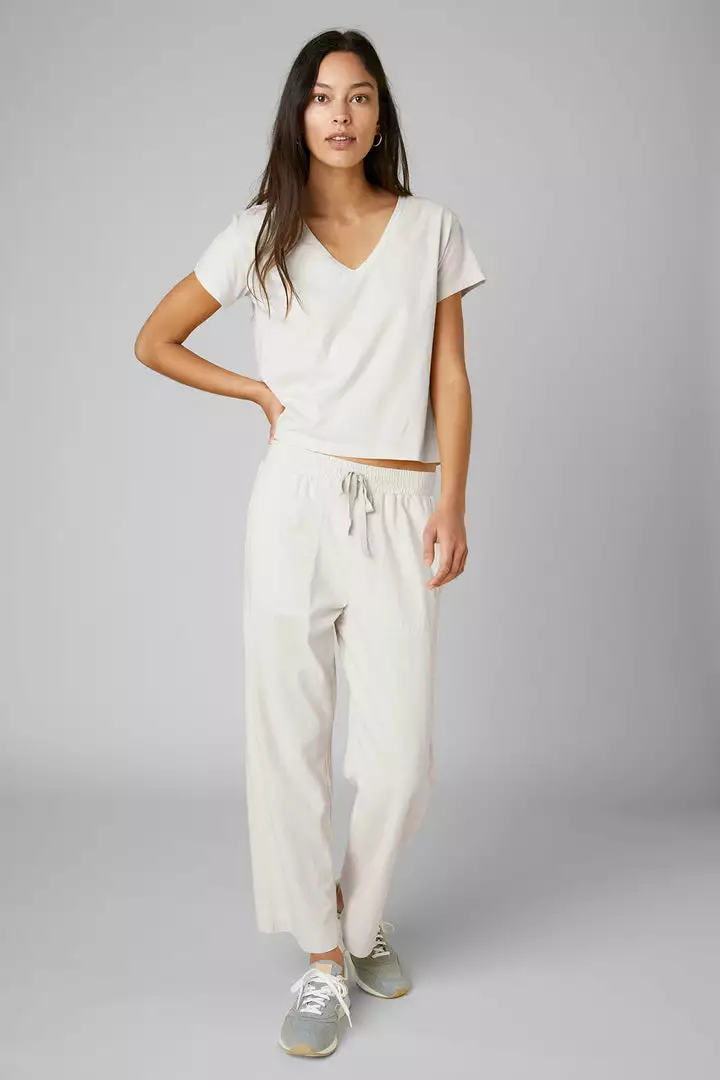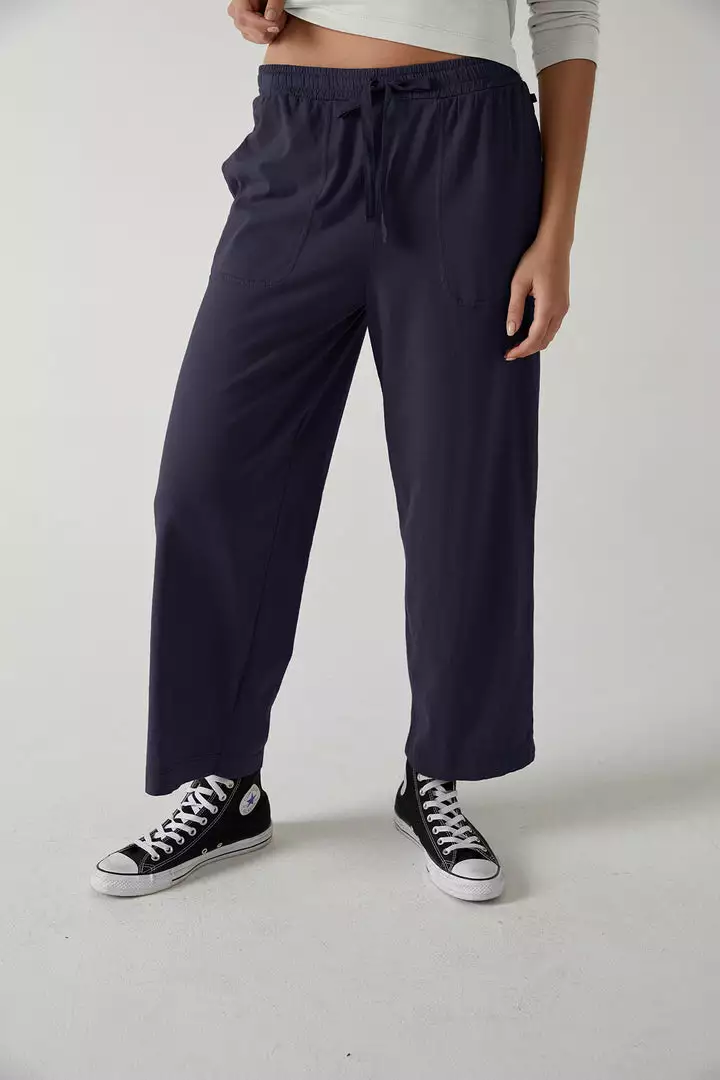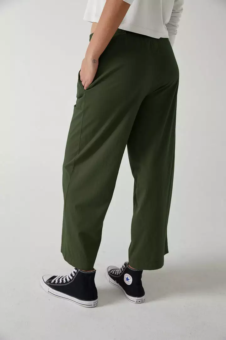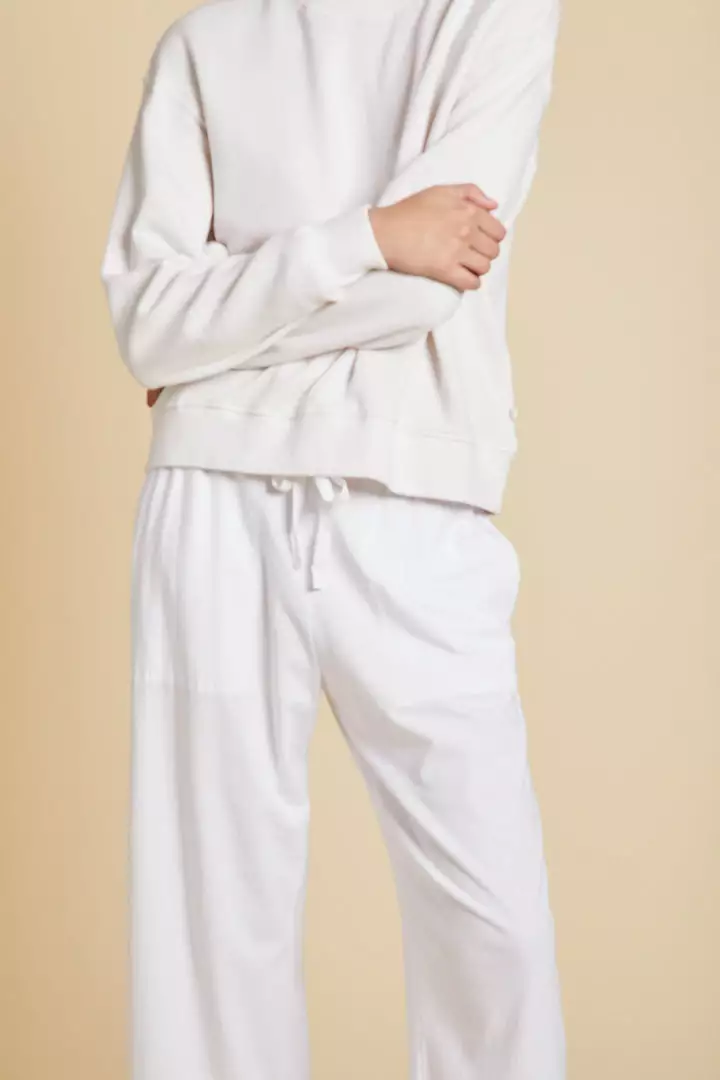 Every closet needs a superior, yet casual pant. Crafted from an organic cotton and with a straight leg these pop-on bottoms feature an elastic waist and slash pockets. Fits like an elevated jogger.