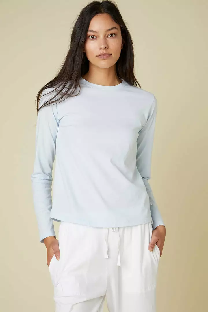 The ultimate in seasonless dressing and style This long sleeve tee is crafted from an organic cotton with a soft hand. A relaxed fit with just a hint of slouch that looks great layered or solo.