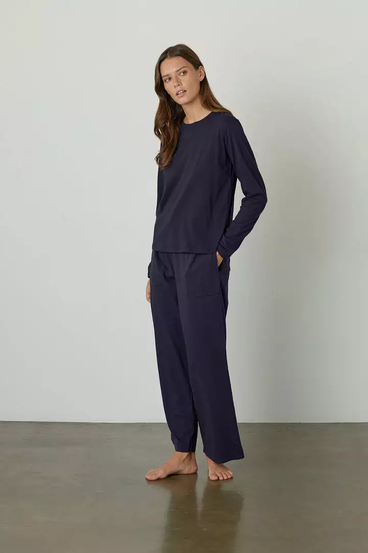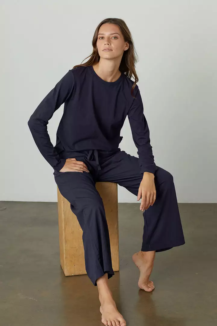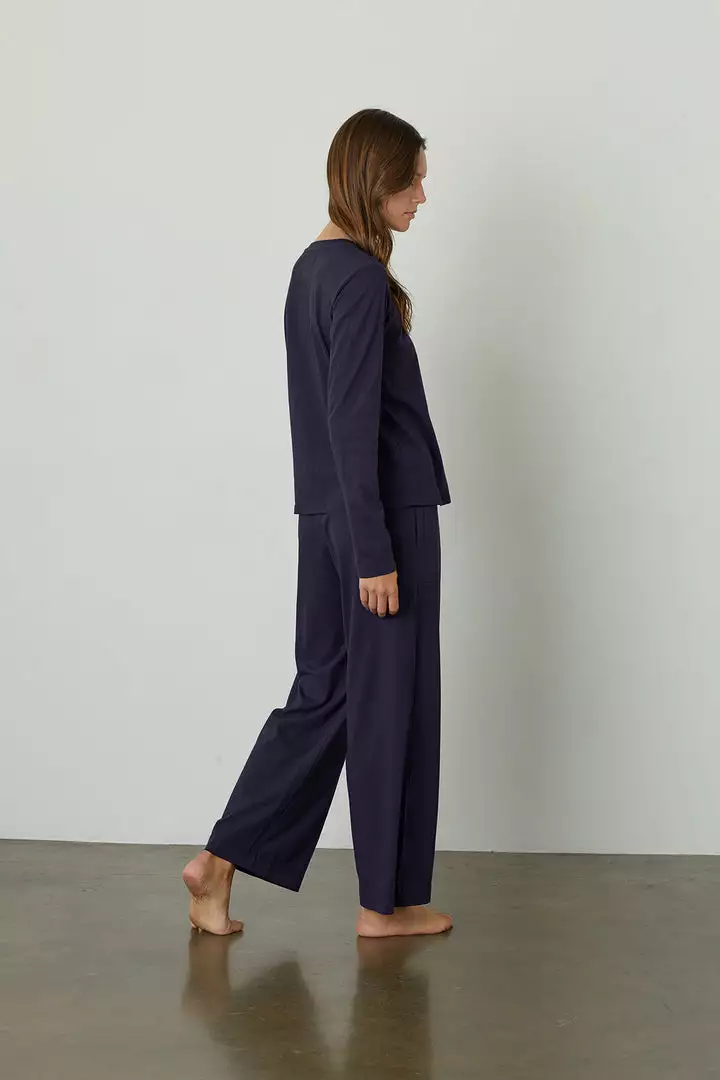 A relaxed fit from top to bottom. Crafted from an organic cotton and made in Los Angeles, this effortless lounge set features the Vicente long sleeve tee with the Pismo wide-leg pull-on pant. For those days when the ultimate goal is comfort (think any weekend). Also makes a stellar gift.