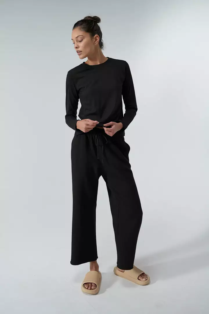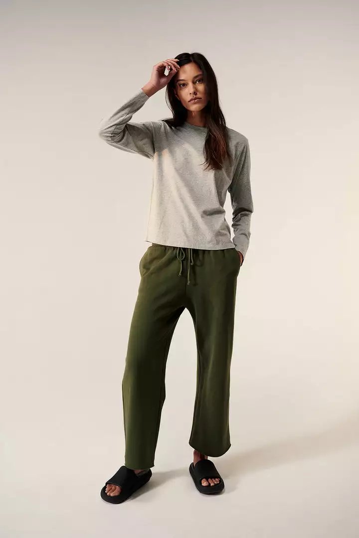 We can’t get enough of this relaxed-fit jogger bottom. Crafted from a soft organic cotton with a fleecy inside for extra coziness, these sit low-slung on the hips with a flared leg and a raw-edge hem so you can crop to your preferred length.