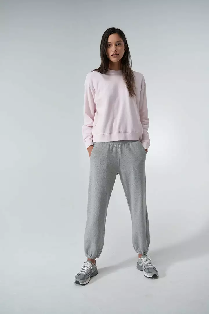 Crafted from an organic fleece that’s cozy on the inside and with thoughtful details like exaggerated seams, a dropped shoulder and slight crop. Great slouch but zero bulk, which is what makes it amazing.