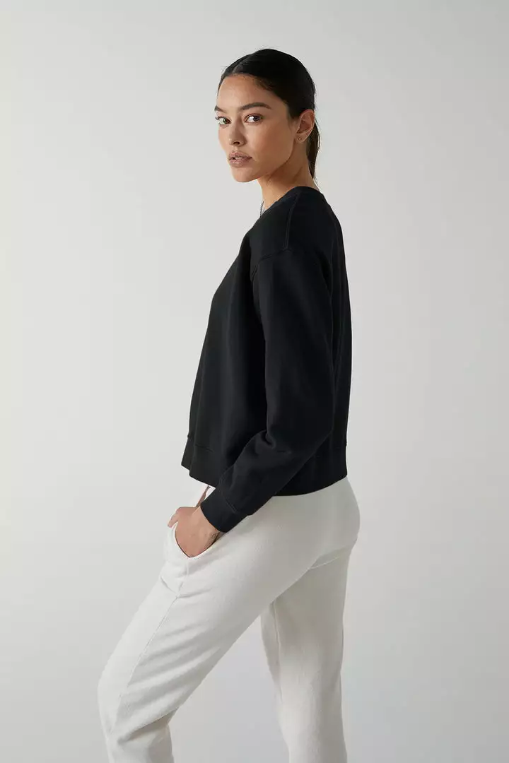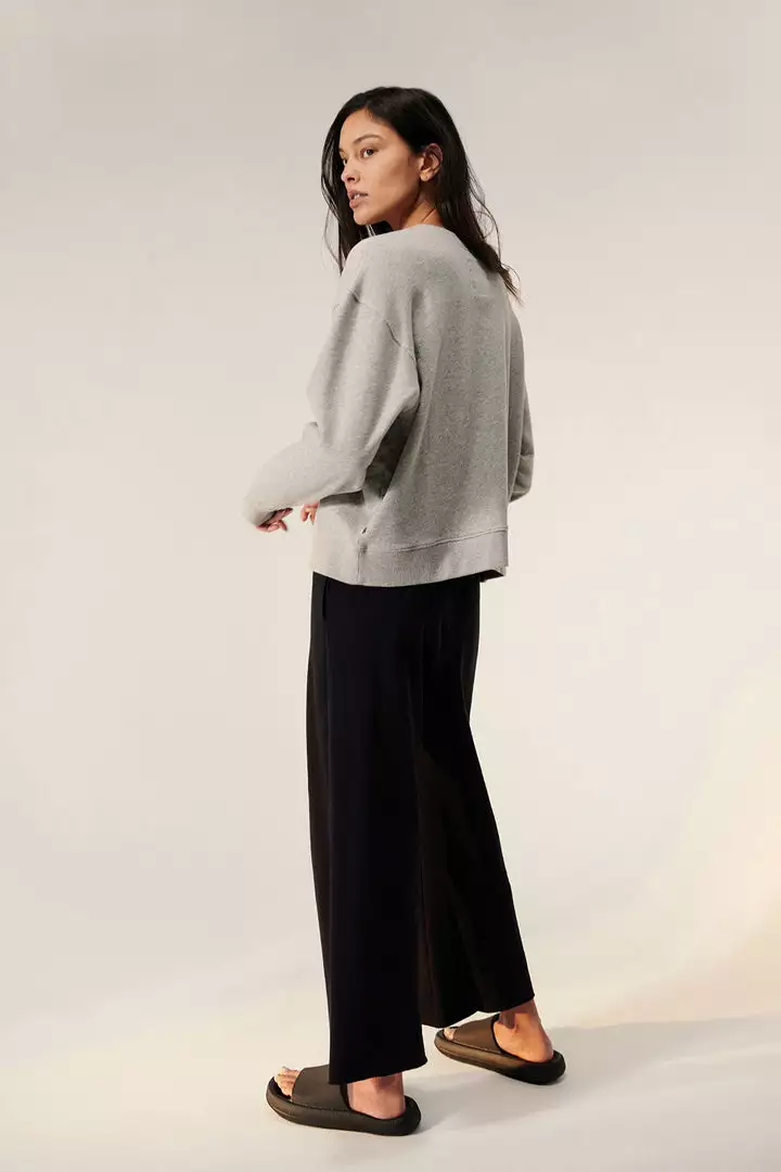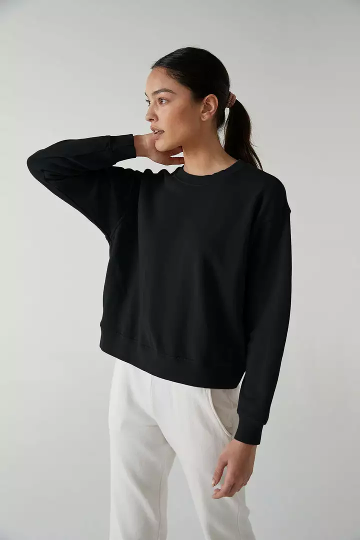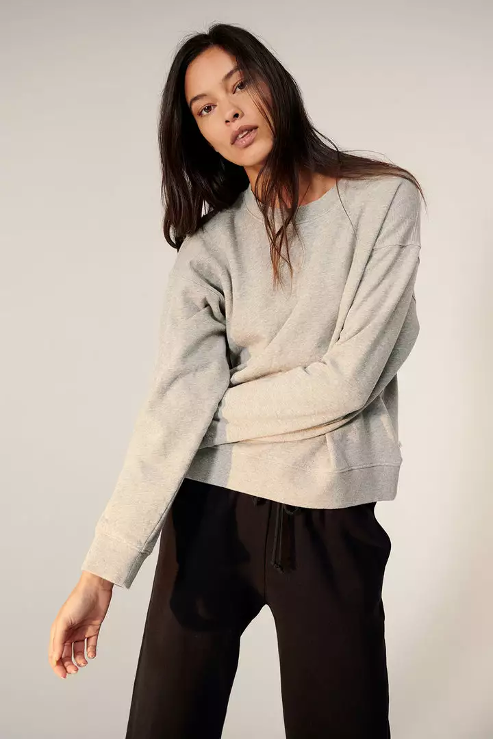 Crafted from an organic fleece that’s cozy on the inside and with thoughtful details like exaggerated seams, a dropped shoulder and slight crop. Great slouch but zero bulk, which is what makes it amazing.