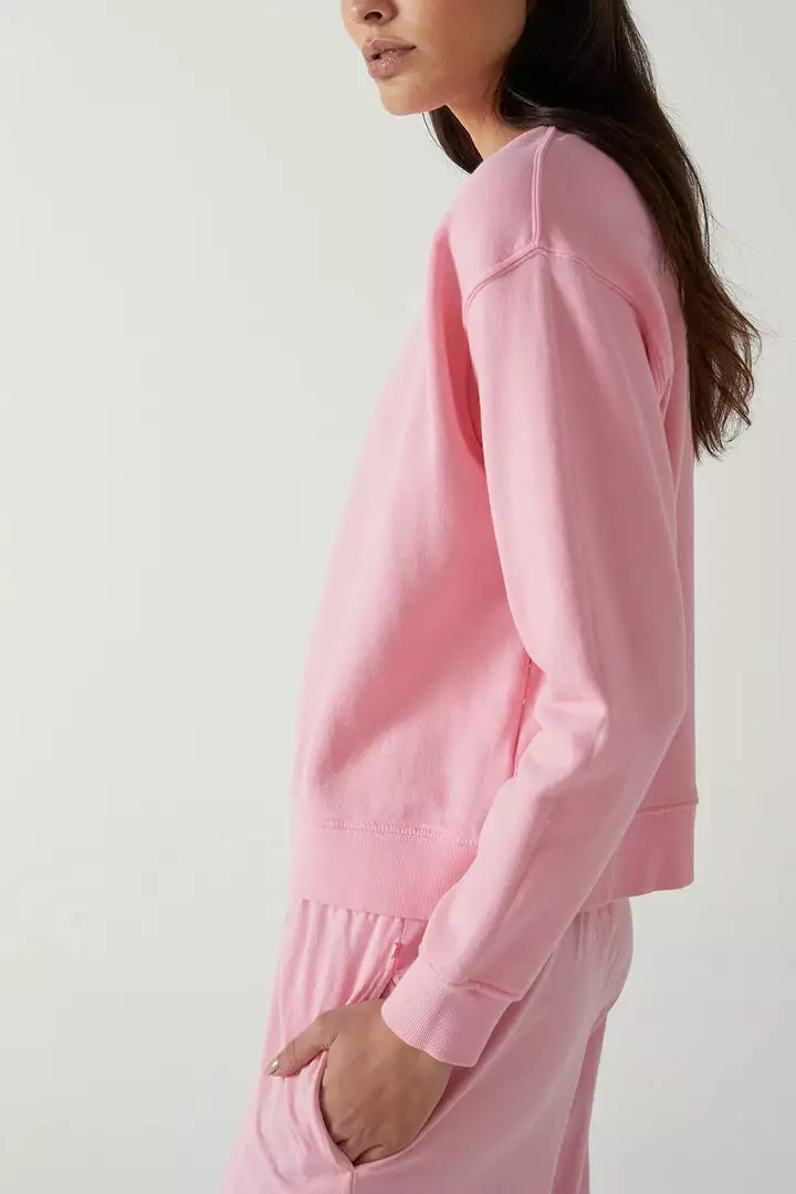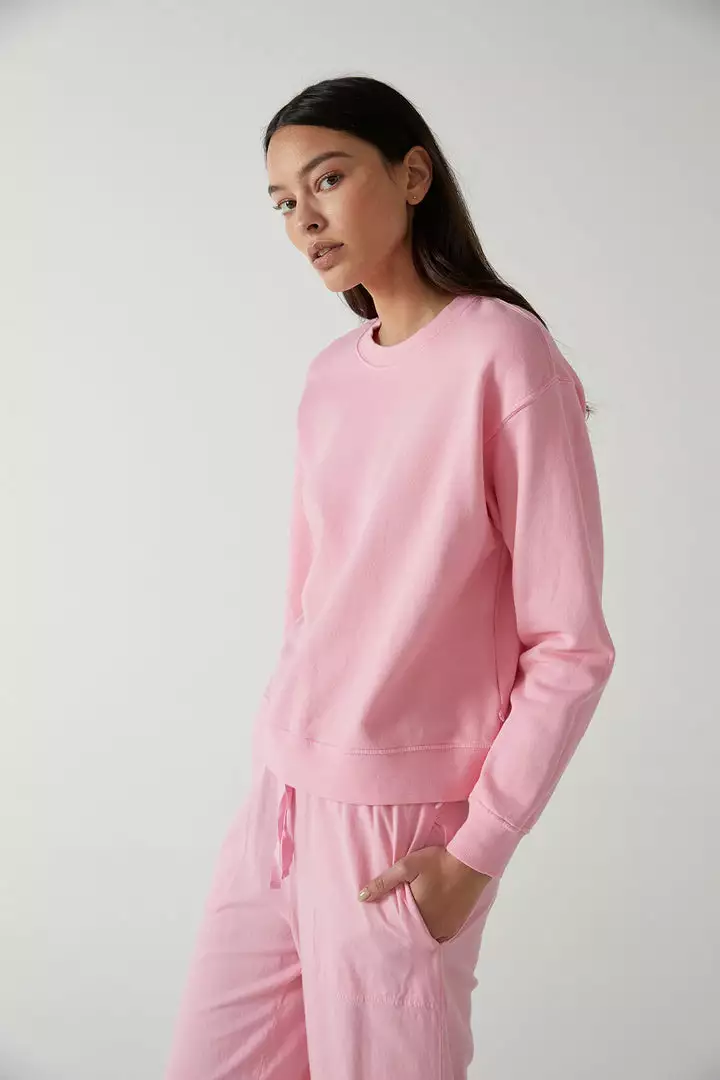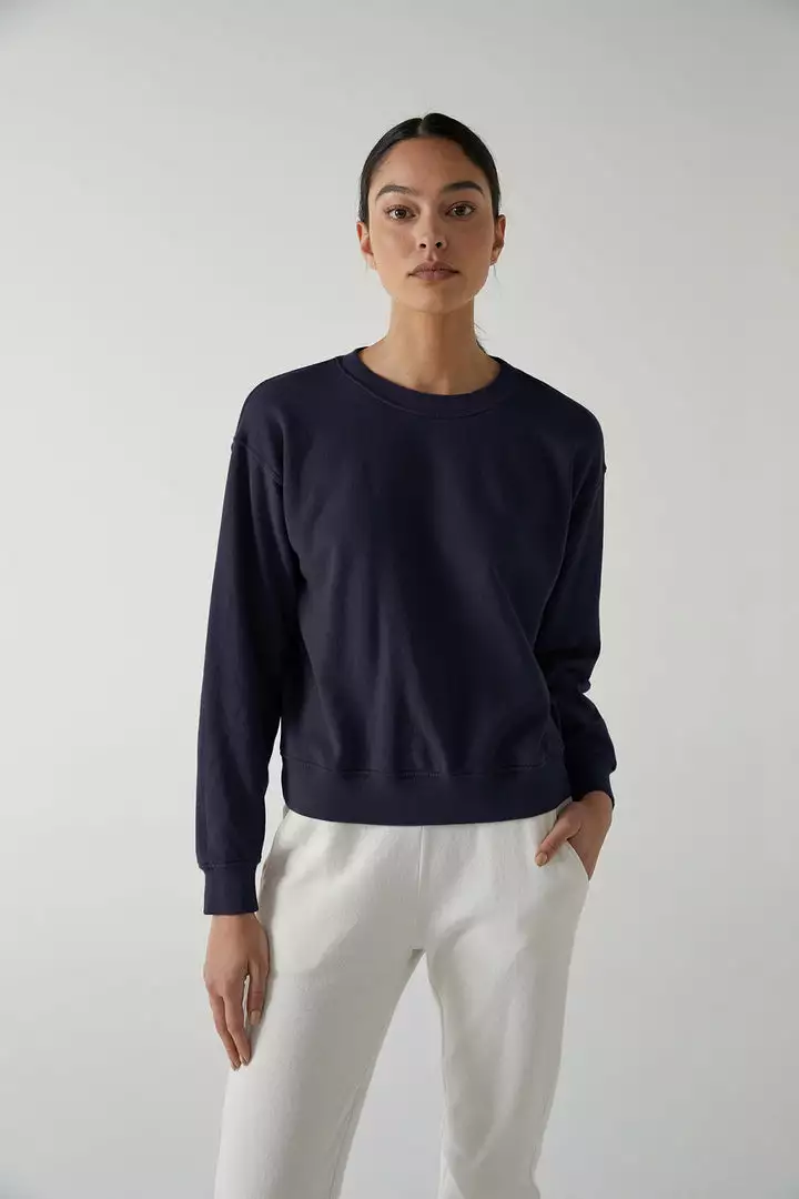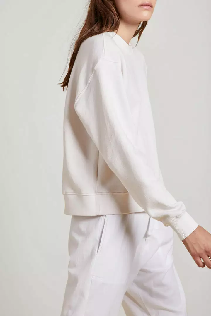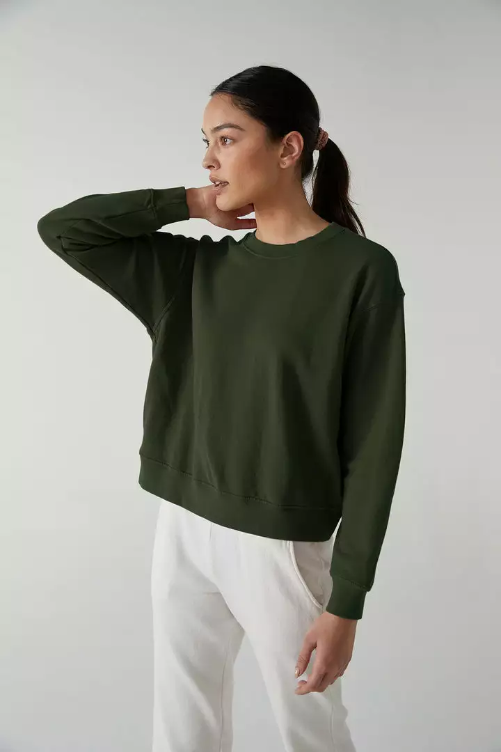 Crafted from an organic fleece that’s cozy on the inside and with thoughtful details like exaggerated seams, a dropped shoulder and slight crop. Great slouch but zero bulk, which is what makes it amazing.